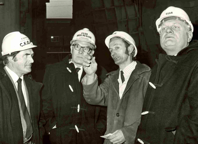 High Marnham Power Station. Photograph taken about 1980. Bob Clayton, Bill Tipper and Unknown in discussion with J. Porteous.